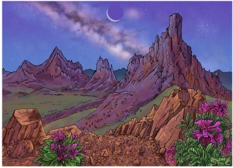 This is the background for the Bible Cartoon: Genesis 02 – The first 7 days – Scene 10 – The First Sabbath (Night version).