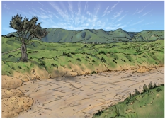 This is the background for the Bible Cartoon: Luke 06 – Parable of the wise and foolish builders – Scene 01 – Solid foundations.