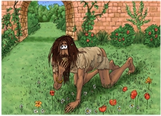 This picture shows King Nebuchadnezzar II crawling around a palace garden, eating grass. I imagine that his palace officials found some quiet, secluded garden in the palace grounds to put him, whilst he was in this condition, so that very few people in his kingdom knew what had happened to him.