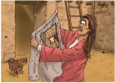 Bible Cartoon: Luke 05 – Parable of new cloth on old robe
