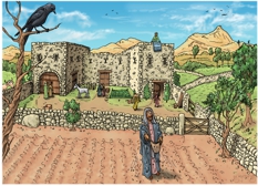 Unspecified in Bible narrative, I have set this scene in the late morning.